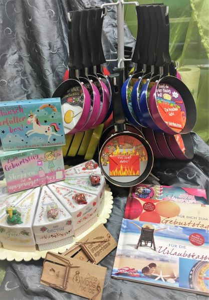Von Männergeschenken über Glücksbringer bis hin zu kreativen Verpackungen für Geldgeschenke – Das Alles finden Sie bei uns. Aufgrund der Produktvielfalt aus Blumen, Geschenkartikeln und Spezialitäten ist es uns möglich Ihnen beim Zusammenstellen eines ganz individuellen Geschenkes behilflich zu sein. Selbstverständlich verpacken wir Ihr Geschenk auch für Sie.