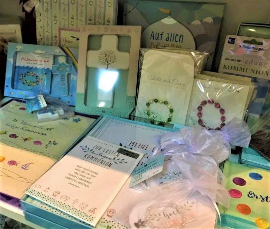 In unserem Geschäft gibt eine große Auswahl an Geschenkartikeln. Für jeden Anlass ist etwas Passendes dabei: Geburt, Taufe, Kommunion, Hochzeit, Muttertag, Vatertag, runder Geburtstag, neues Heim und und und…